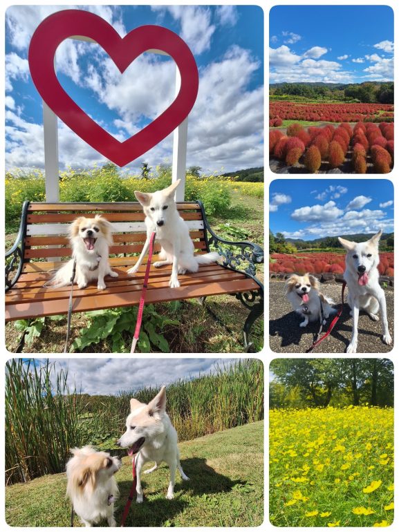 この時期はキバナコスモスとコキアが見頃で素敵な景色を堪能できました😊