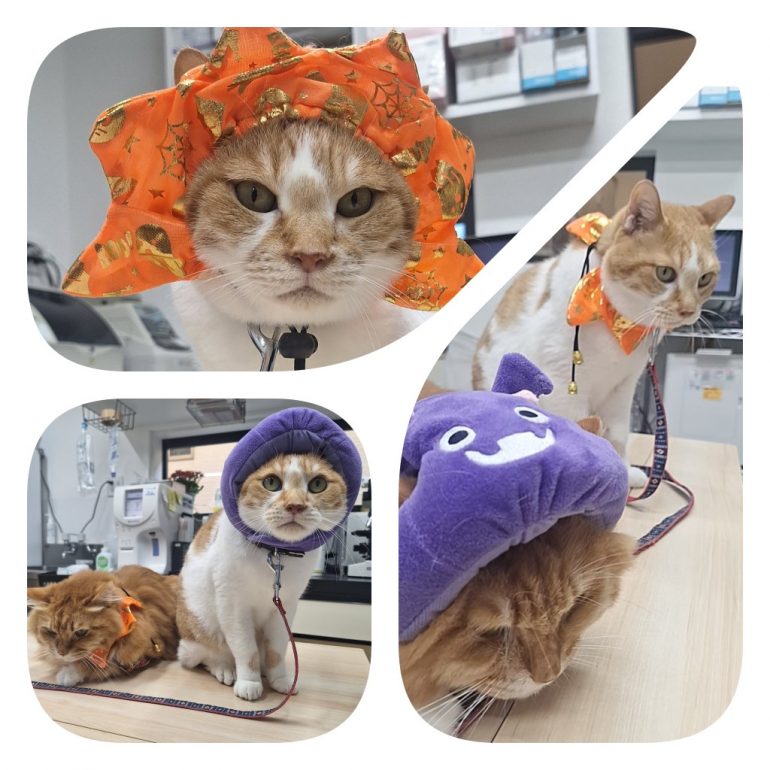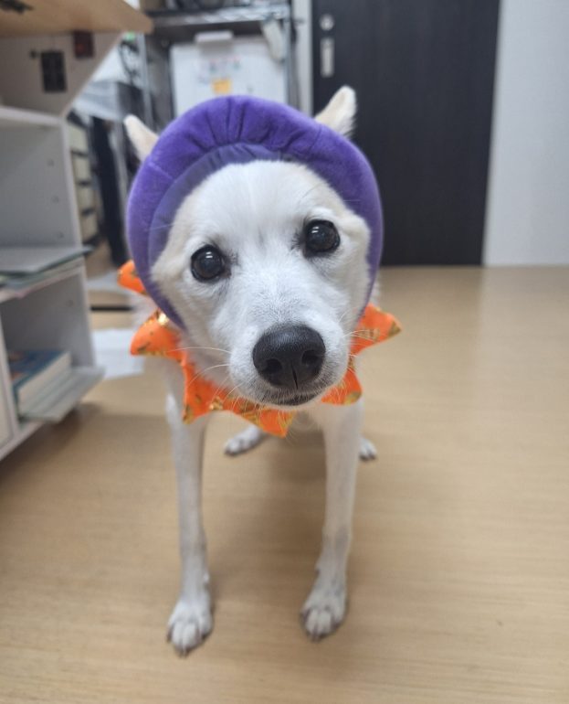 花音はハロウィーンというか古希のおばいちゃんみたいw かわいいと思って買ったかぶりものでしたがちょっと失敗でした💦